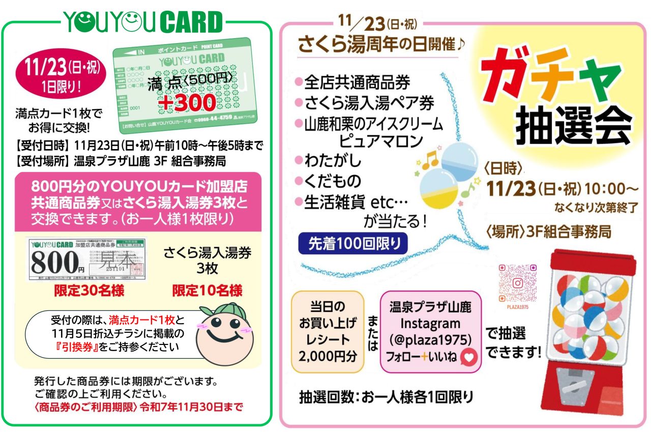 【YOUYOUカード+300交換会】&【ガチャ抽選会】開催!