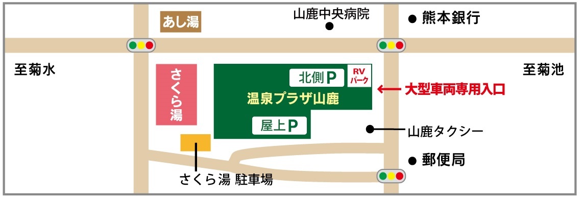 ※到着されましたら下図の大型車両専用入口付近で待機し、お電話下さい。